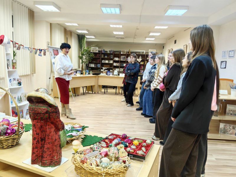 Кроме того, в читальном зале новых поступлений было организовано посещение выставки новогодних открыток под названием "Чудеса на ладони".