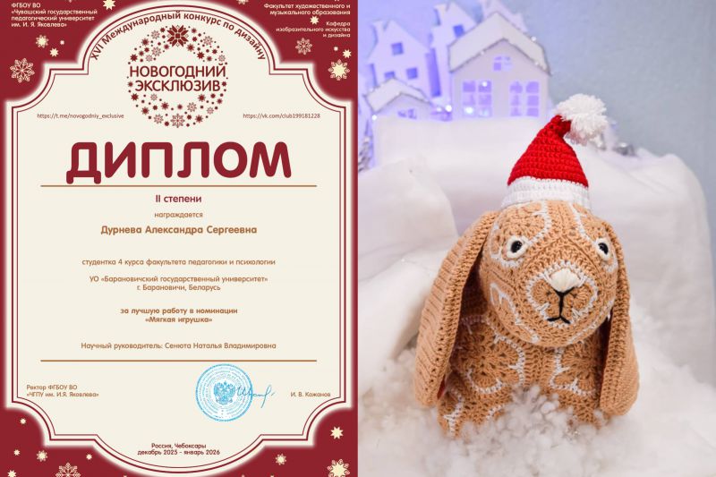 - Дурнева Александра Сергеевна, студентка специальности ОТИ, в номинации «Мягкая игрушка)» (научный руководитель: Сенюта Н.В.);