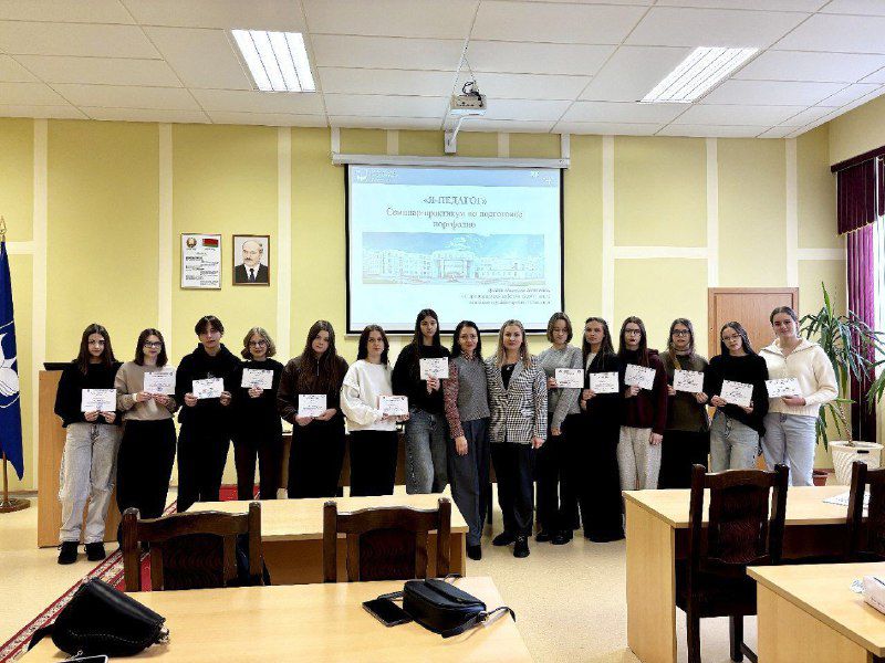 13 января состоялся семинар-практикум по подготовке портфолио «Я — педагог», организованный старшим преподавателем кафедры педагогики и социально-гуманитарных дисциплин Дегиль Натальей Ивановной. Данное мероприятие проходило в рамках Научного марафона, посвященному Дню белорусской науки. Выпускники педагогических классов и групп педагогического направления, планирующих поступать на педагогические специальности, узнали требования к структуре, содержанию и оформлению портфолио, а также увидели примеры его составления. Старший преподаватель Петрушко Татьяна Владимировна, ответственный за профориентационную работу на факультете педагогики и психологии познакомила учащихся со специальностями факультета, правилами приема в университет и ответила на вопросы будущих абитуриентов.